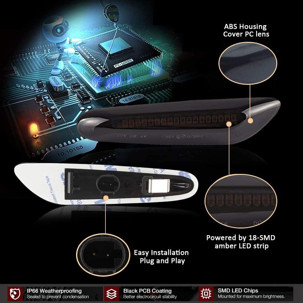 2 Smoke LED Side Marker Turn Signal Light Replacement For BMW E90 E91 E93