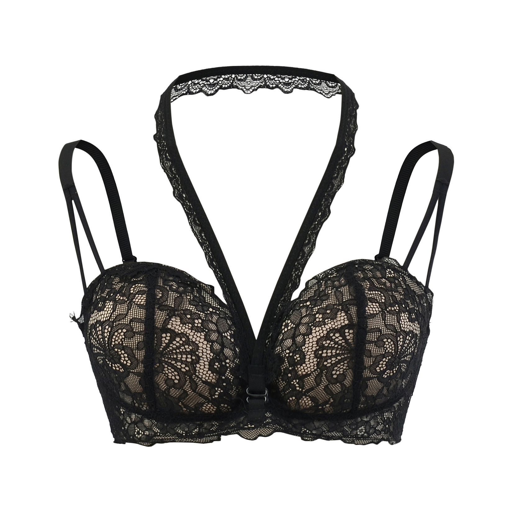 Bra with chest cushion lace neck strap suspender bra underwear