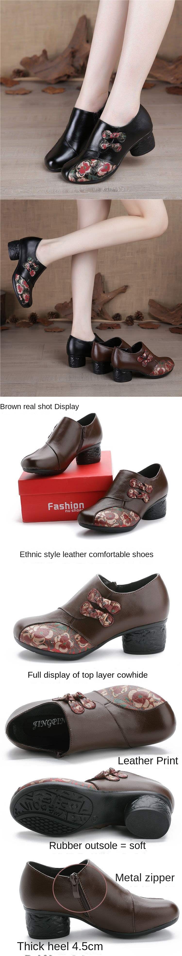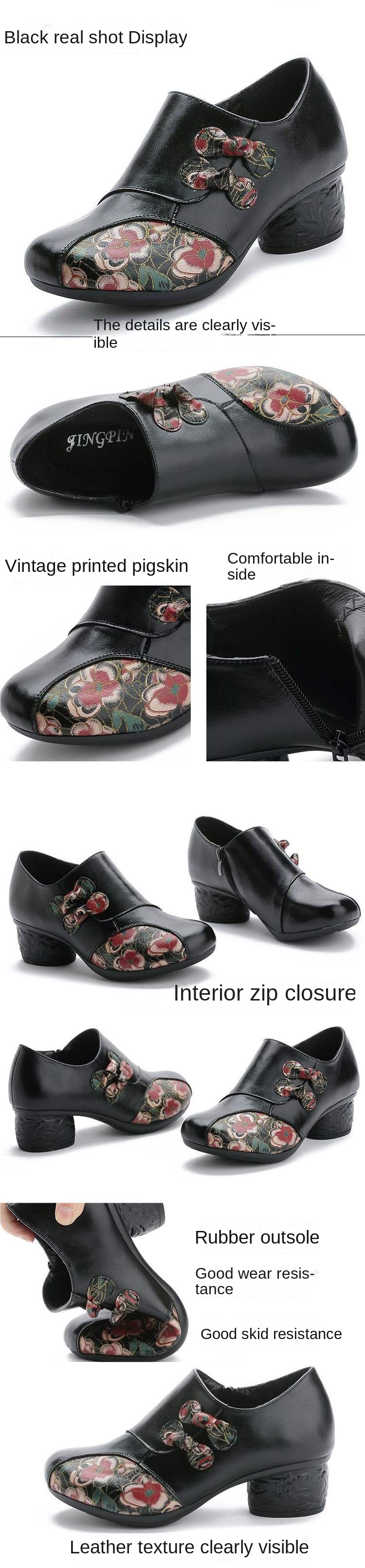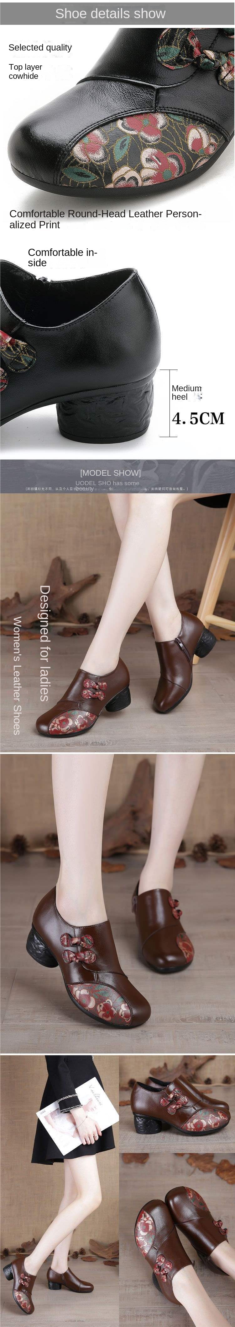 Ethnic Style Deep Mouth Single Shoe Women’s Leather Shoes with Thick Heel Mid-Heel Mother Shoes Dance Shoes