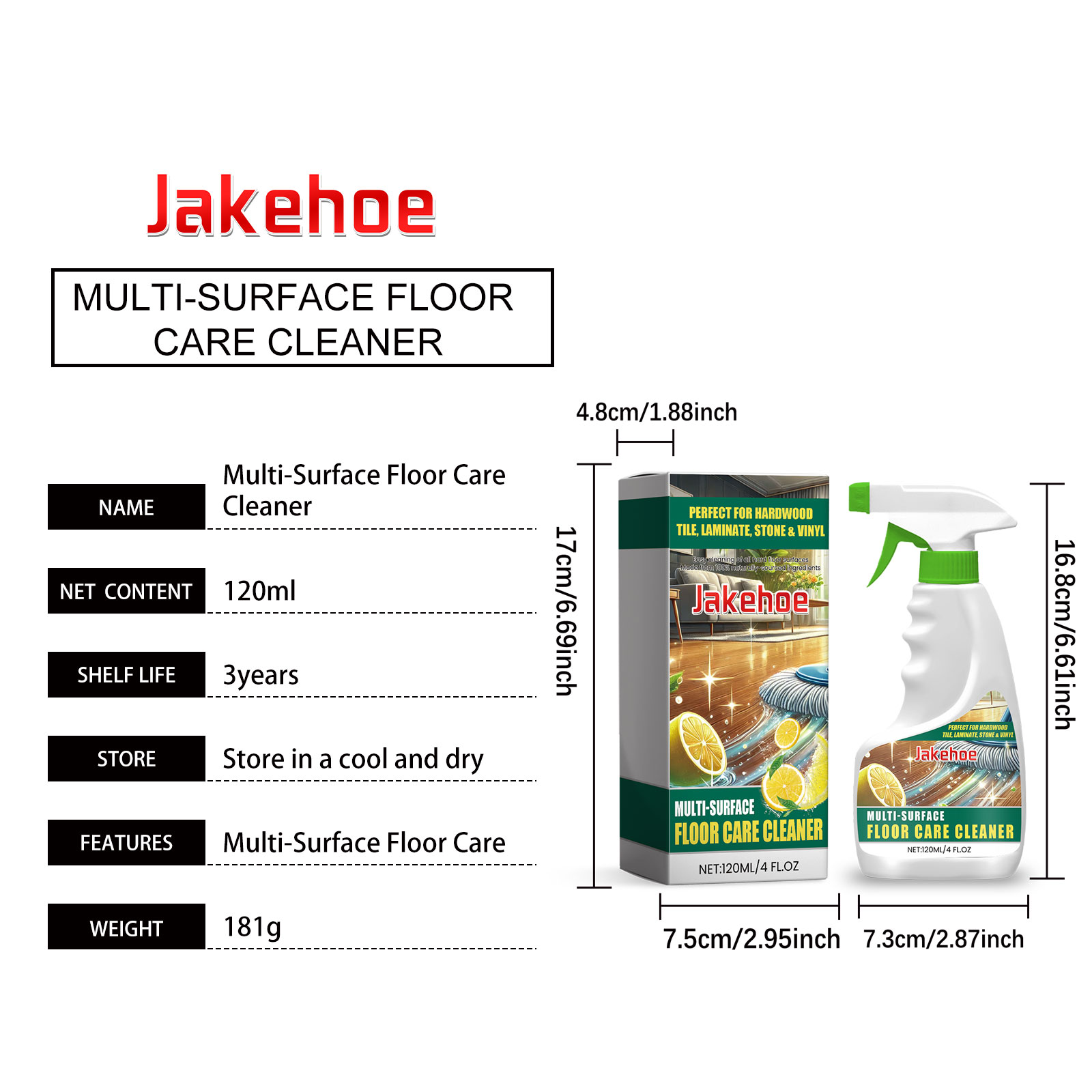 Jakehoe Floor Cleaner Maintenance Clean Floor Spray Decontamination Non-Slip Bright Floor Cleaner