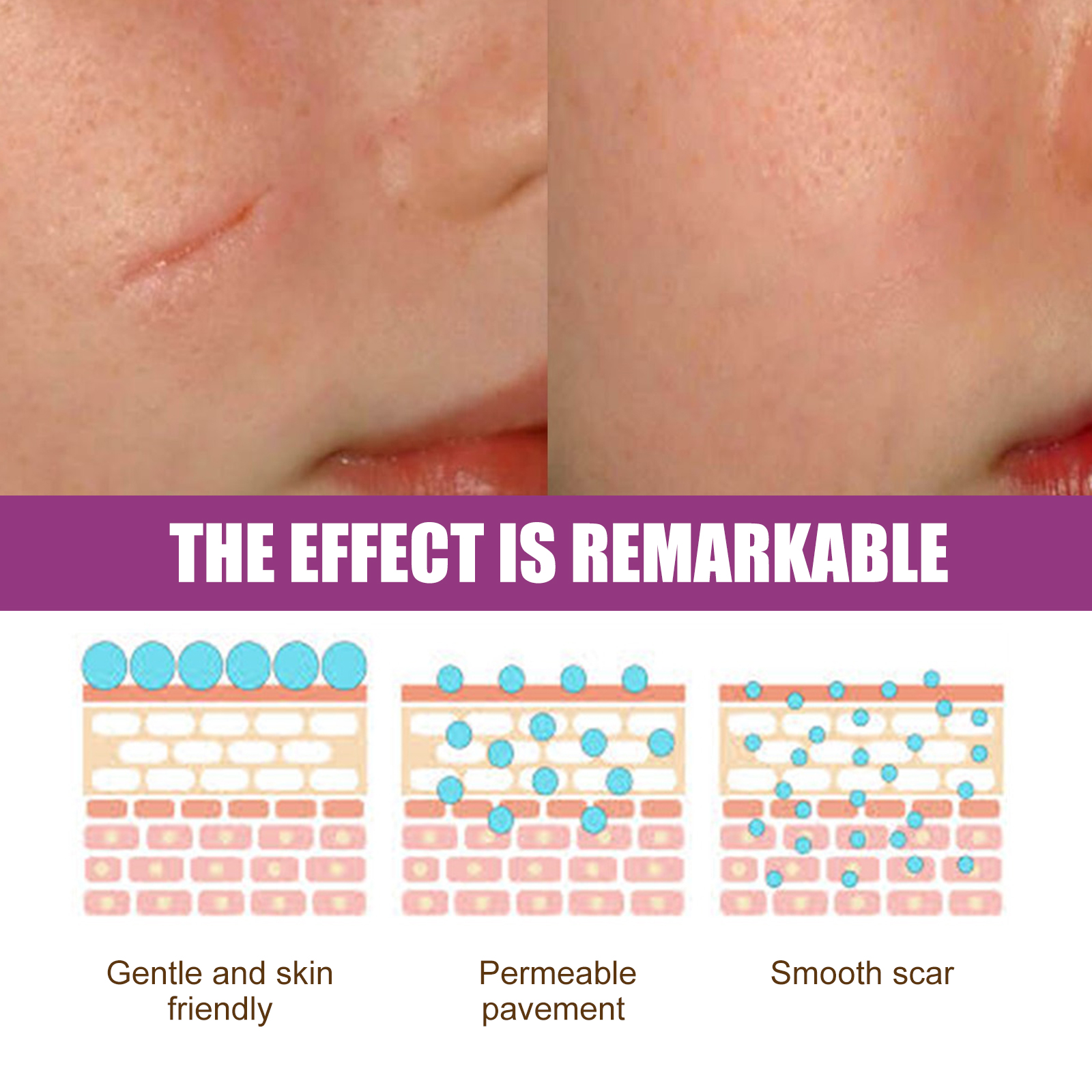 Our scar cream contains sodium hyaluronate and licorice extract. It can lighten the skin tone, make the skin texture more delicate, reduce redness and relieve discomfort. Deeply moisturize and nourish the bottom layer of the skin, keeping the skin smooth, delicate, tender and elastic. Its use method is very simple: first of all, after cleaning, take an appropriate amount of scar cream to apply on the fingertips, apply on the scar area, and evenly apply, gently massage the scar area. After use, it helps to make skin moist and bright, increase skin firmness, shrink pores, moisturize skin, lock in moisture and enhance skin elasticity.