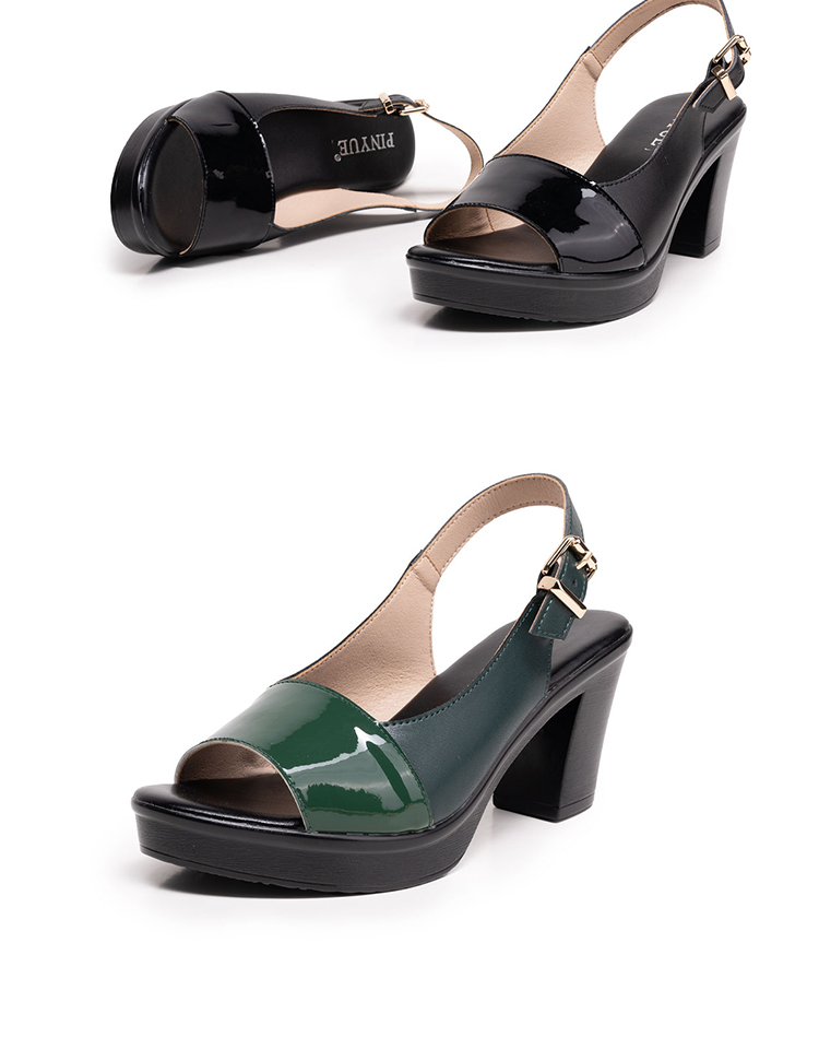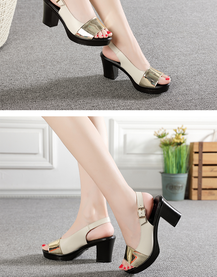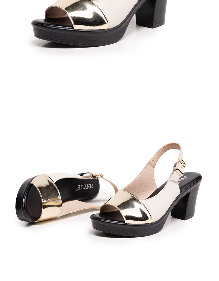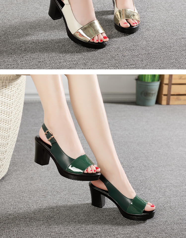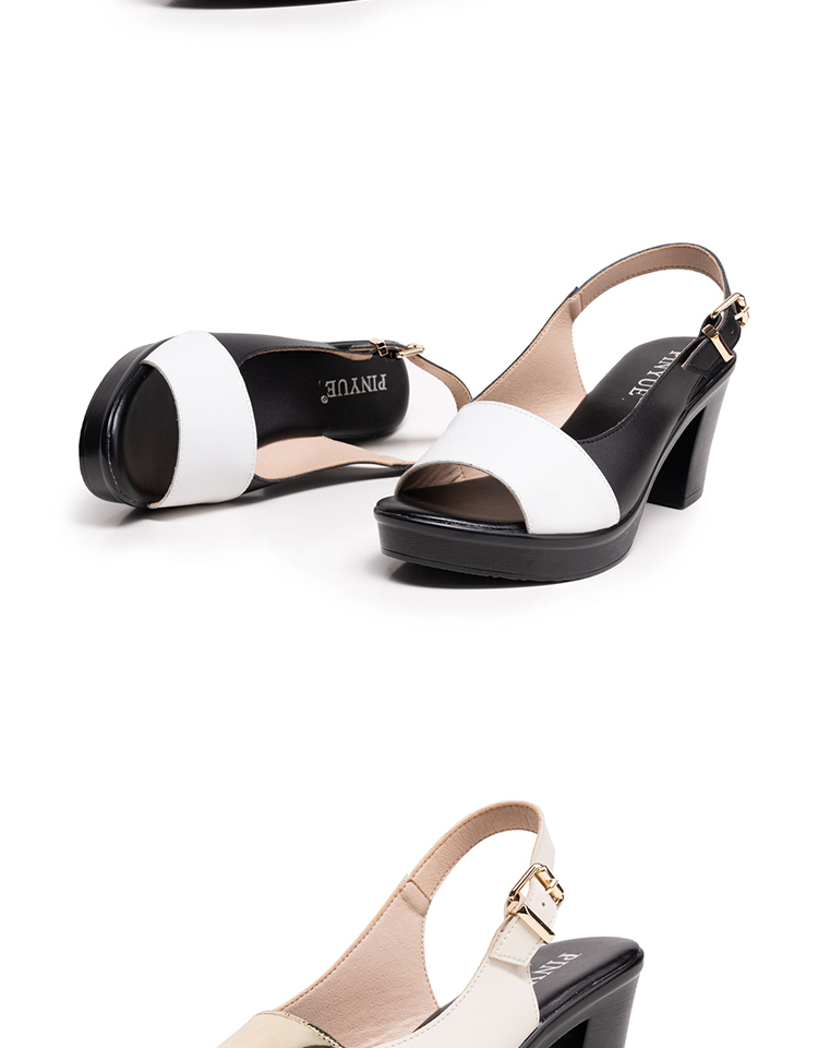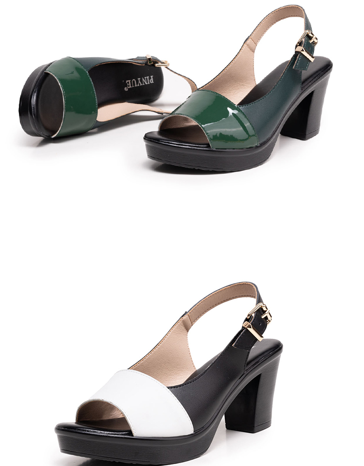 Summer Genuine Leather Roman Sandals for Women with Chunky Heel Color Block High Heel Thick Sole Waterproof Platform Outdoor Slippers