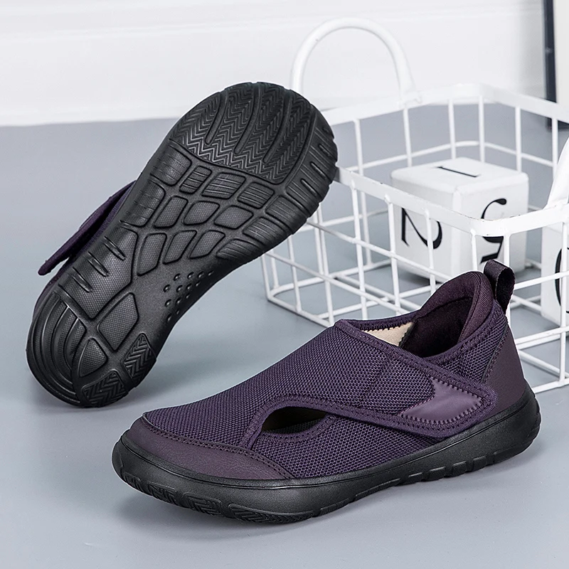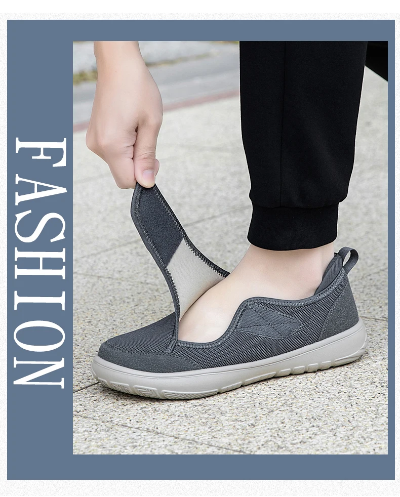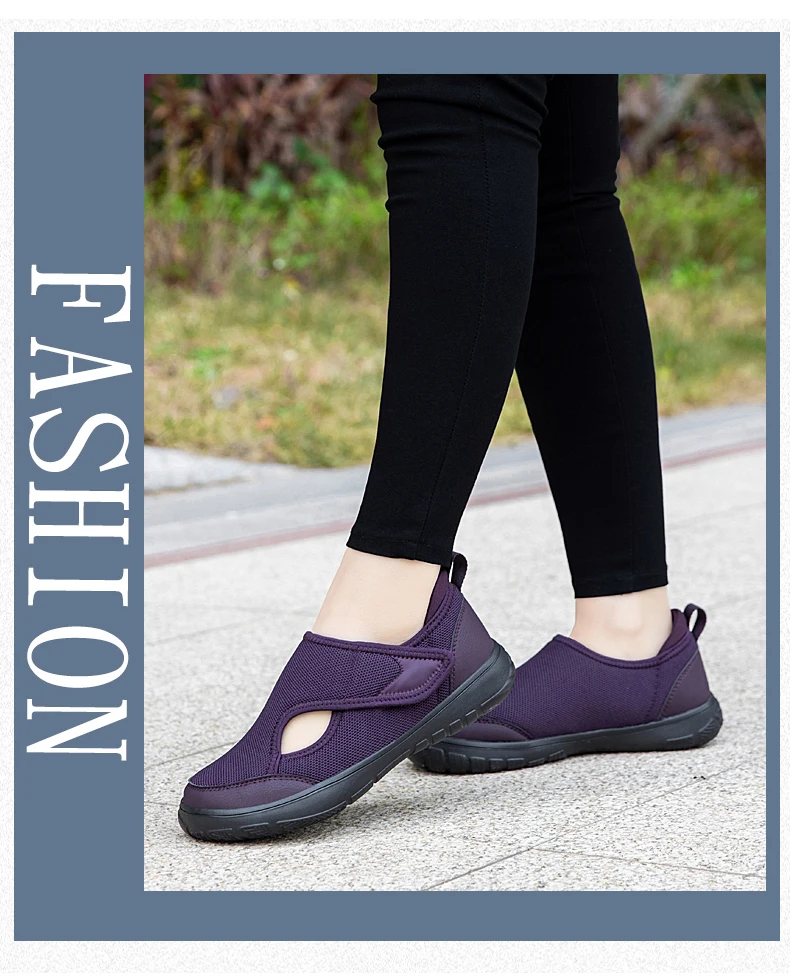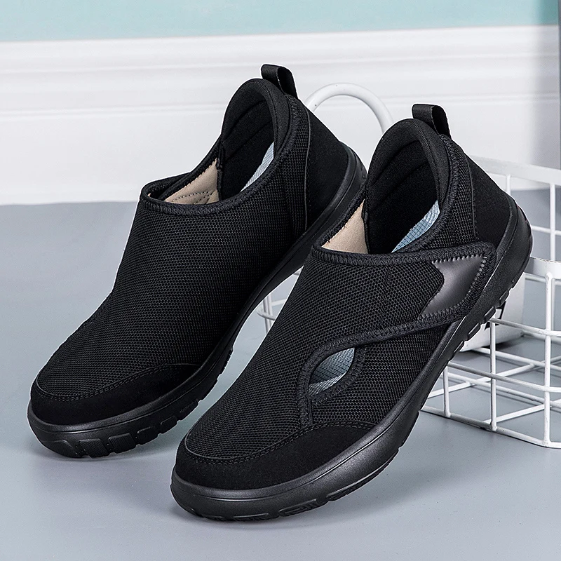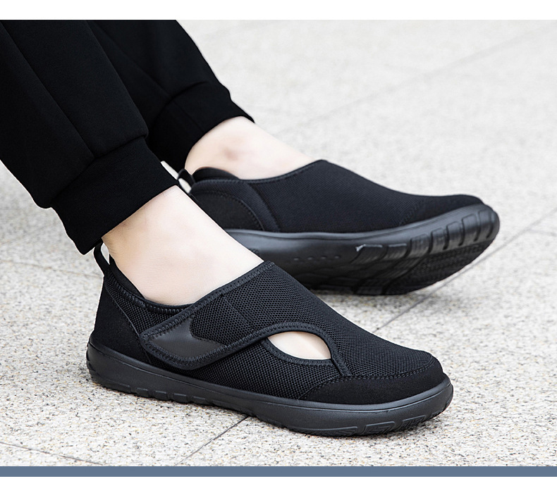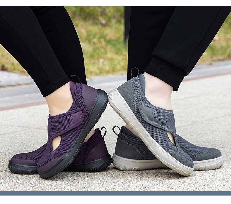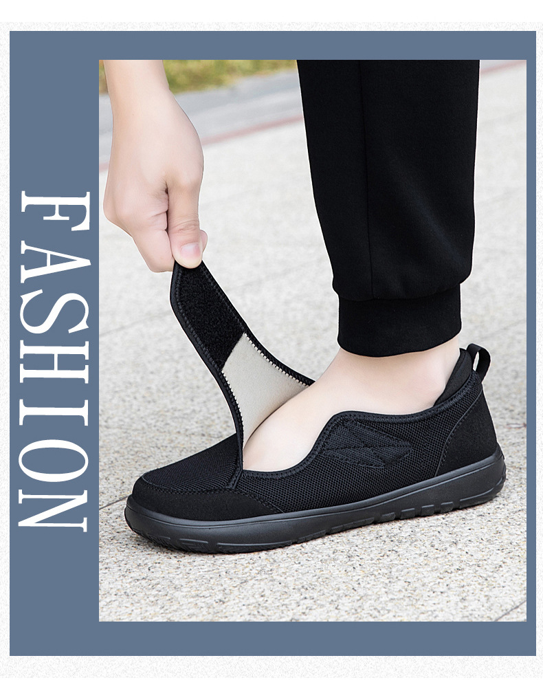 Wide Hook-and-Loop Closure Elderly Walking Shoes Summer Rehabilitation Shoes Simple Lightweight Fly-Knit Mesh Comfortable