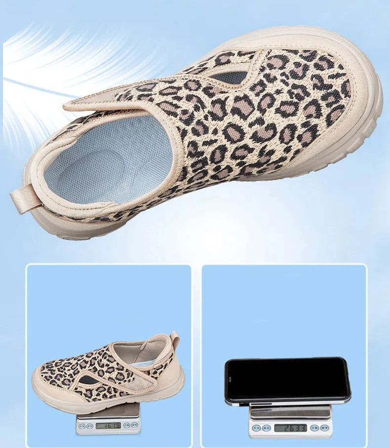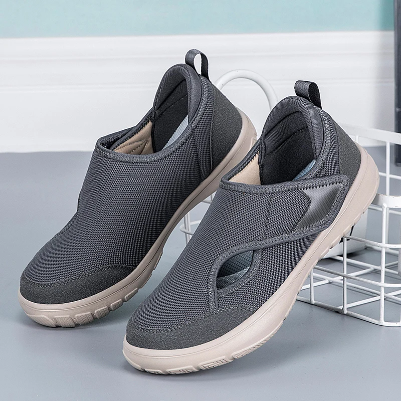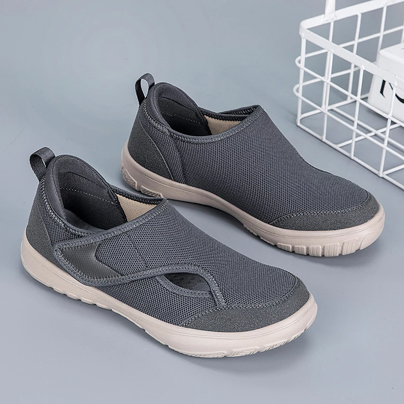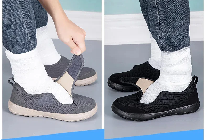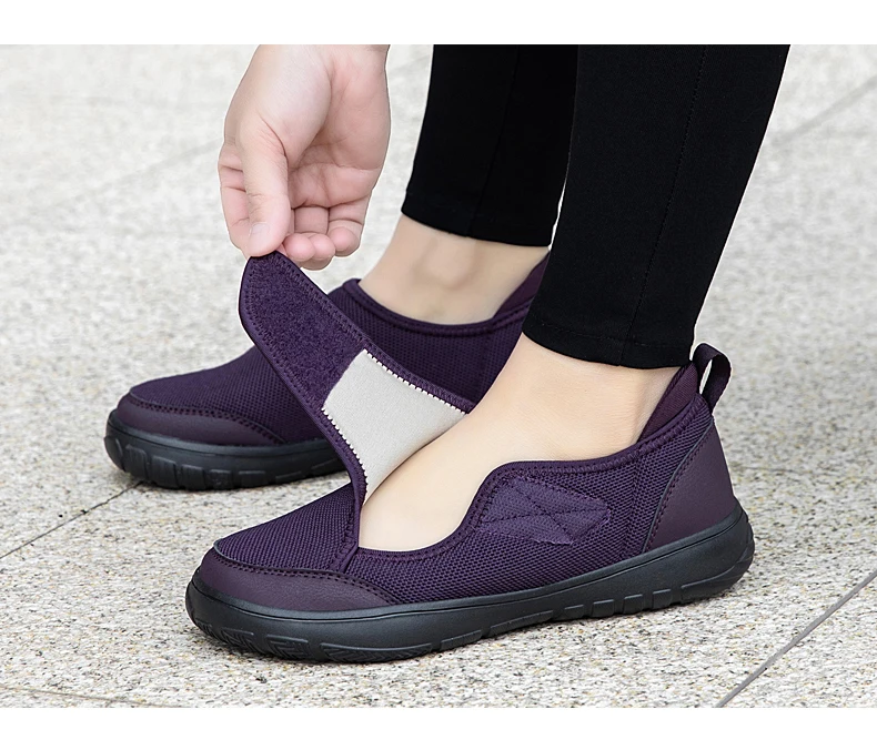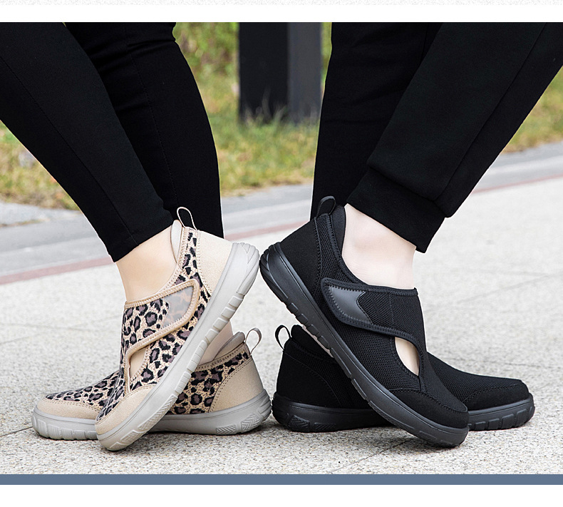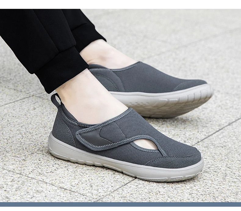Wide Hook-and-Loop Closure Elderly Walking Shoes Summer Rehabilitation Shoes Simple Lightweight Fly-Knit Mesh Comfortable