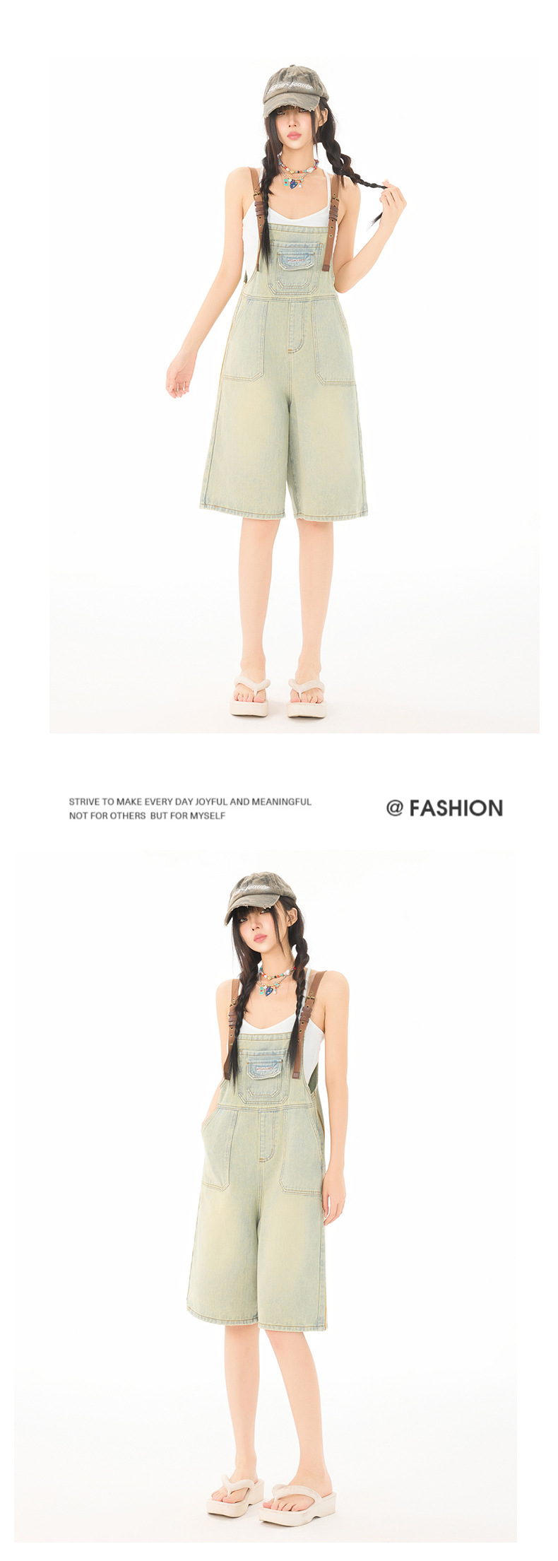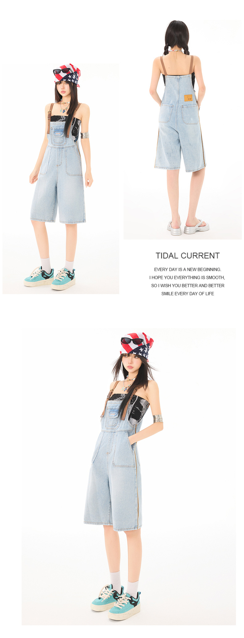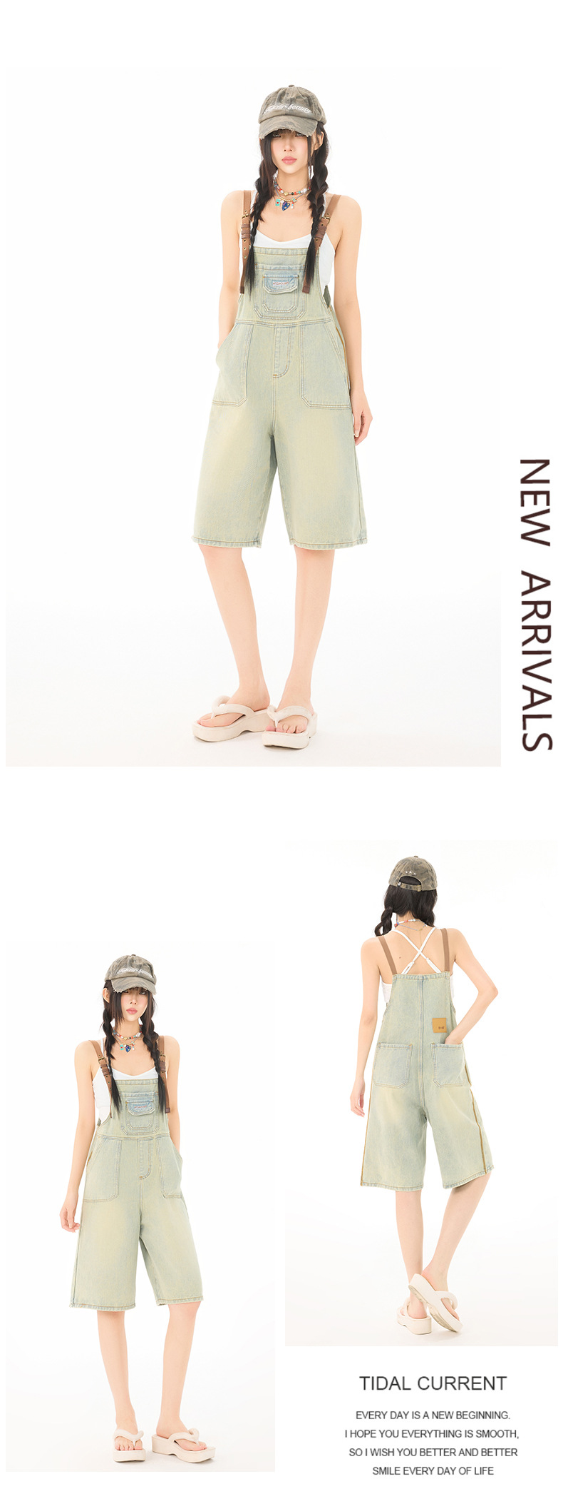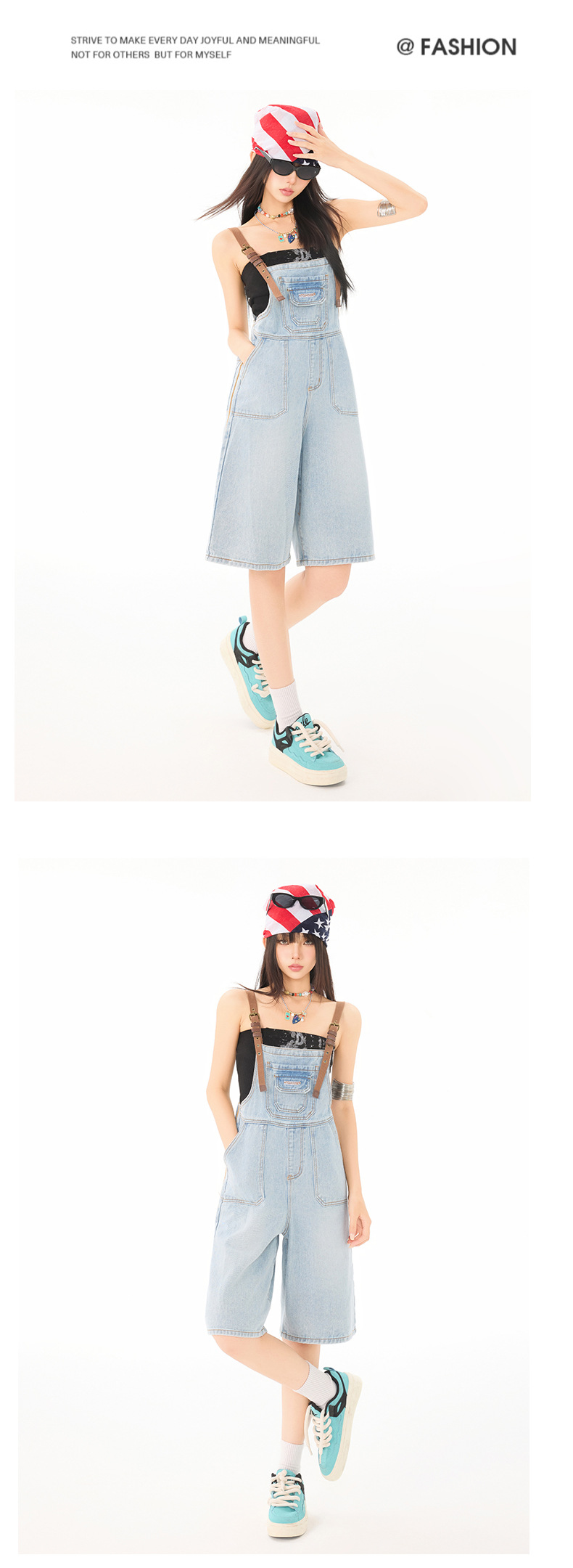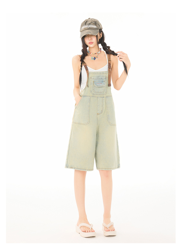 Women’s Denim Overalls Summer Strap Design Loose Age-Reducing Wide-Leg Pants