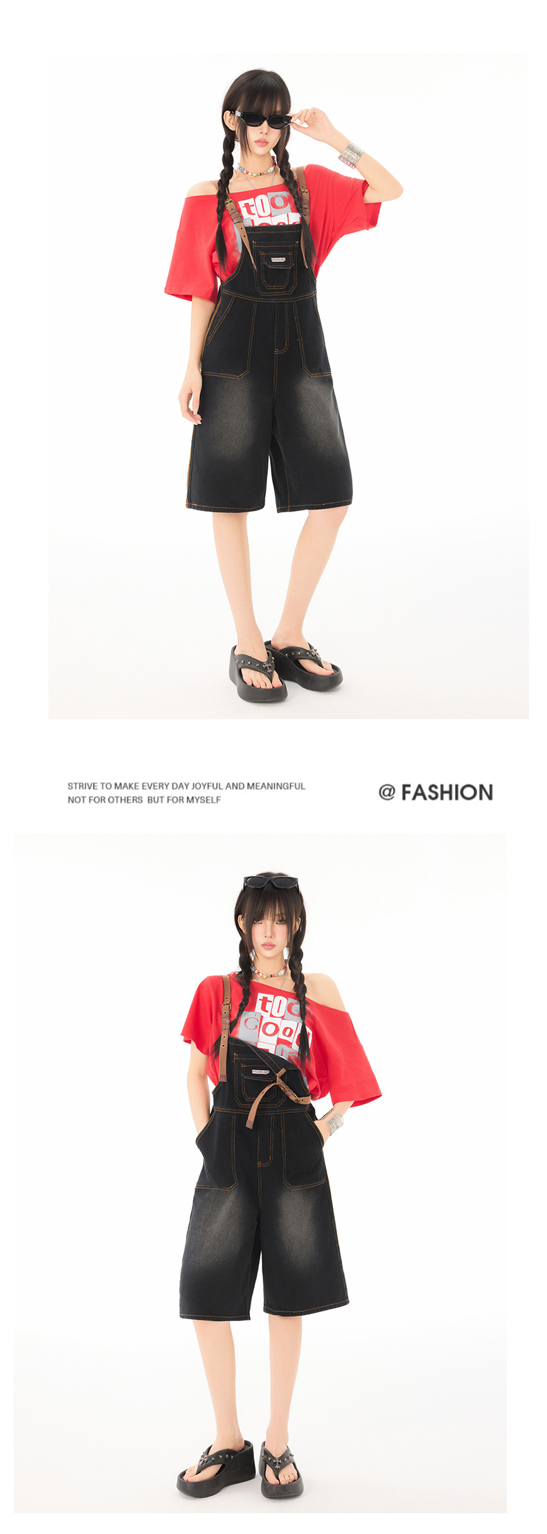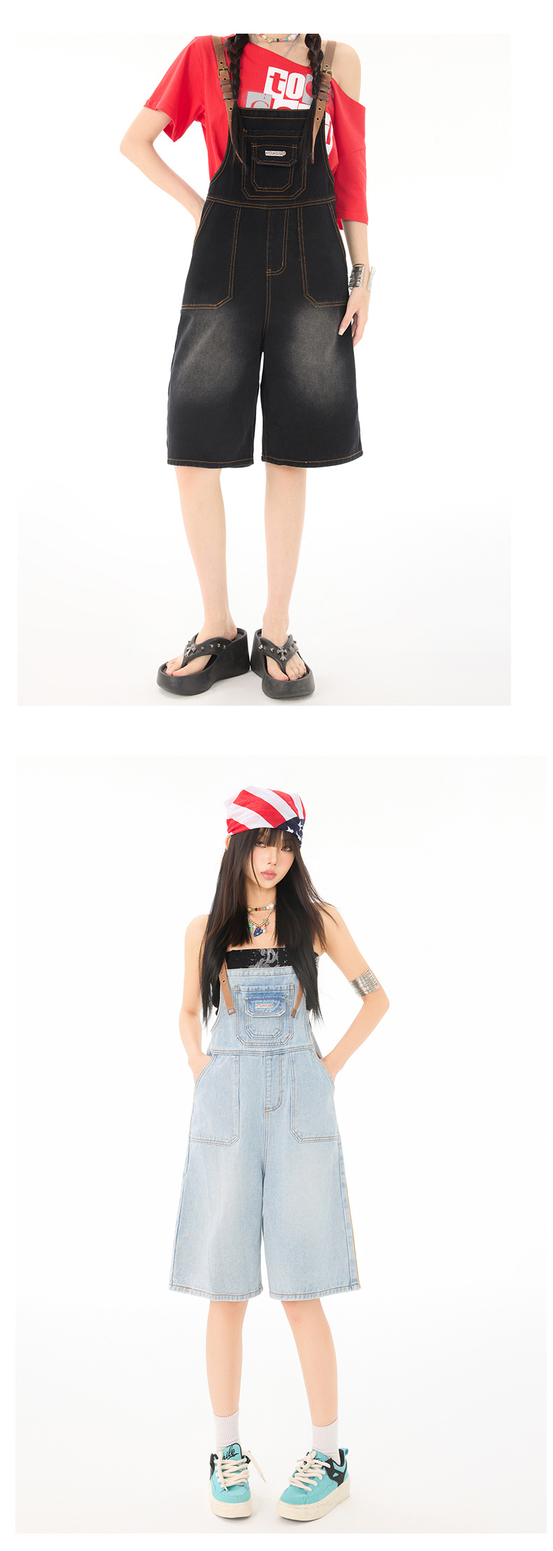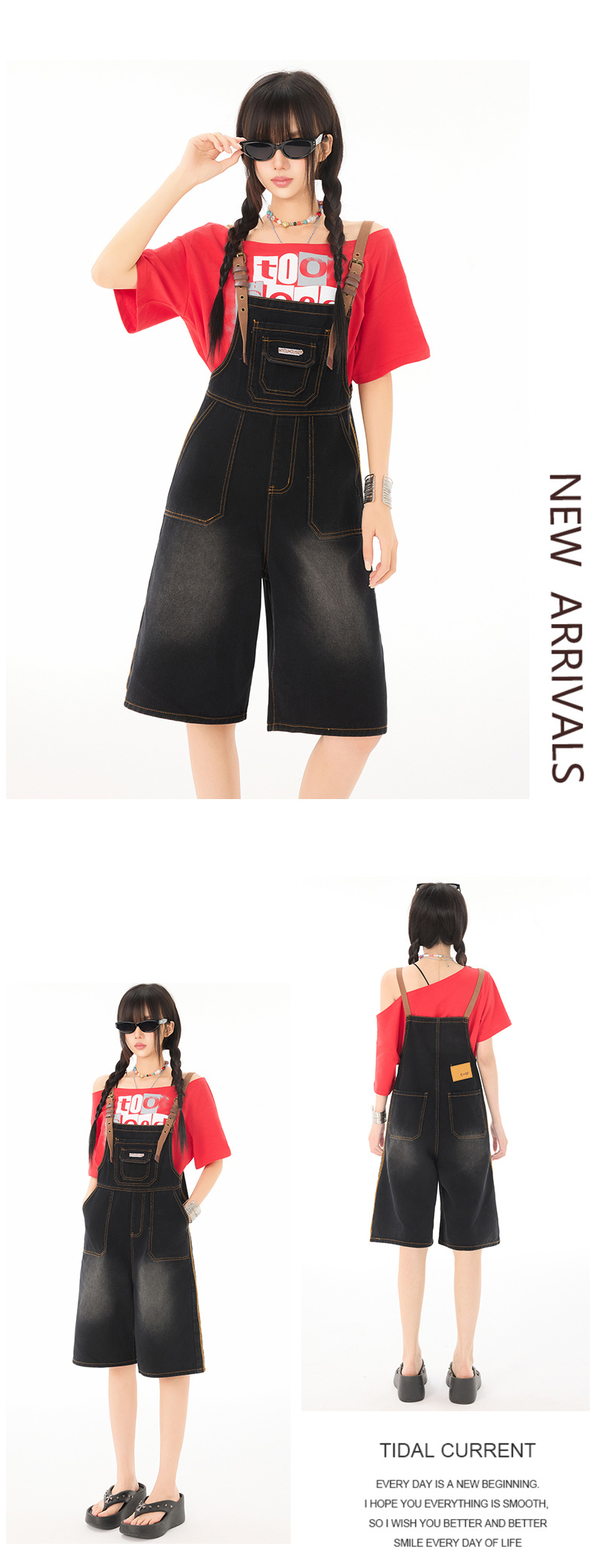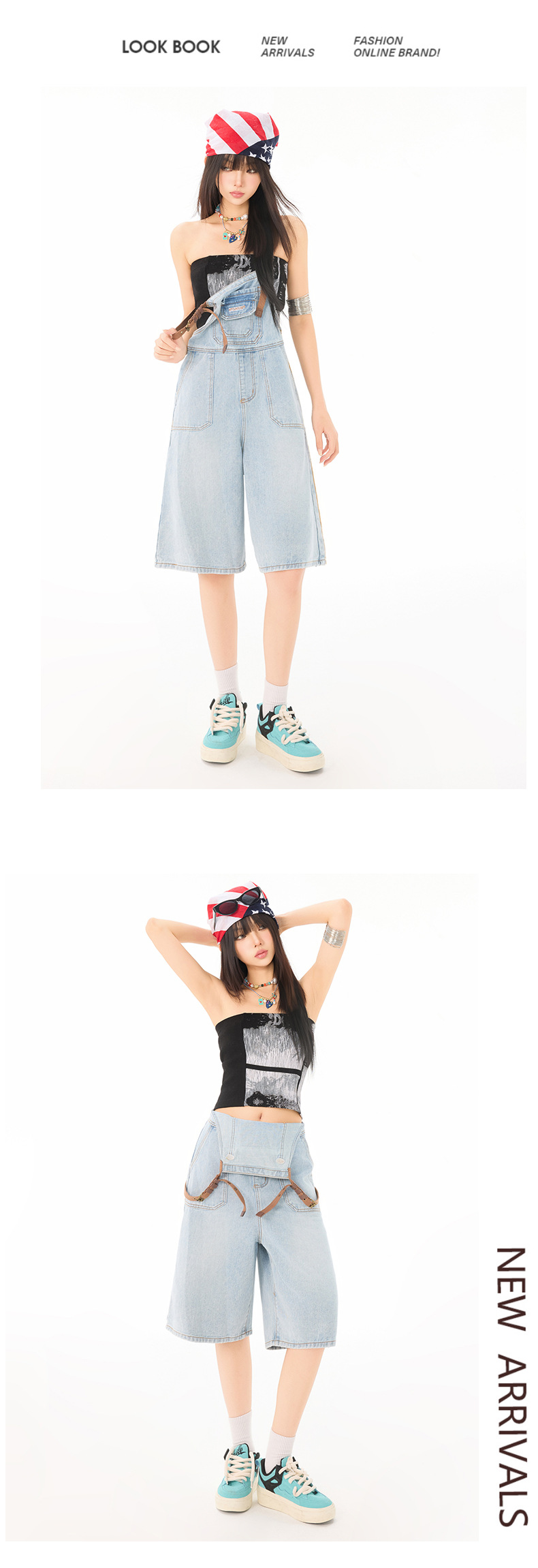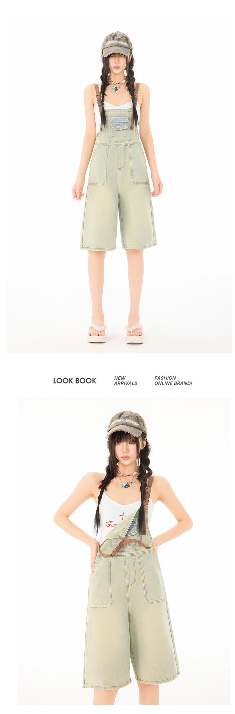 Women’s Denim Overalls Summer Strap Design Loose Age-Reducing Wide-Leg Pants
