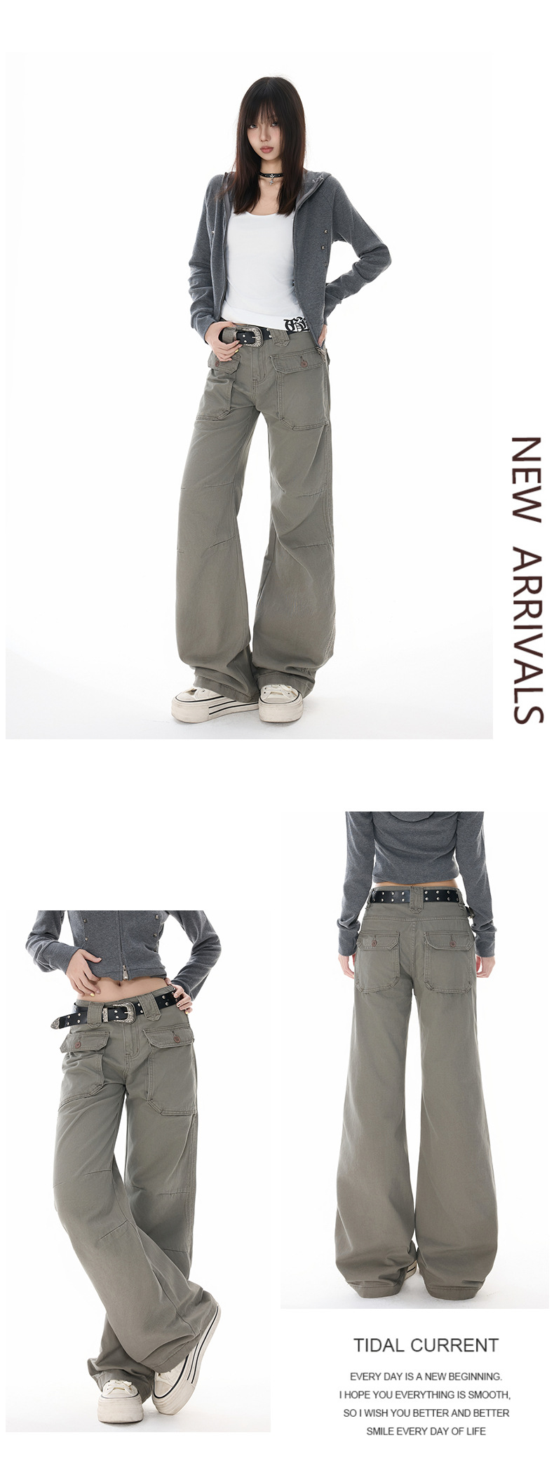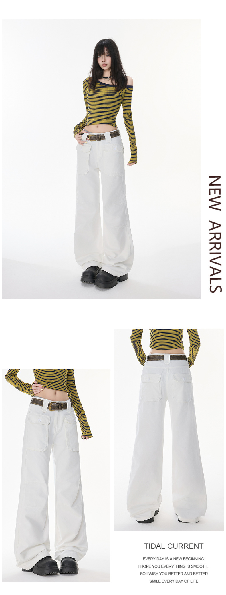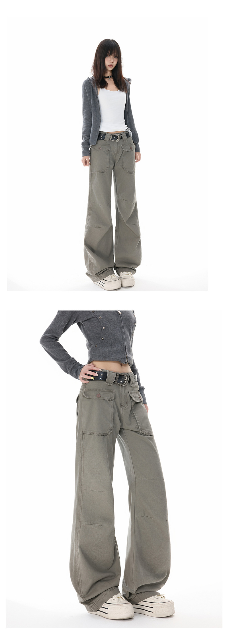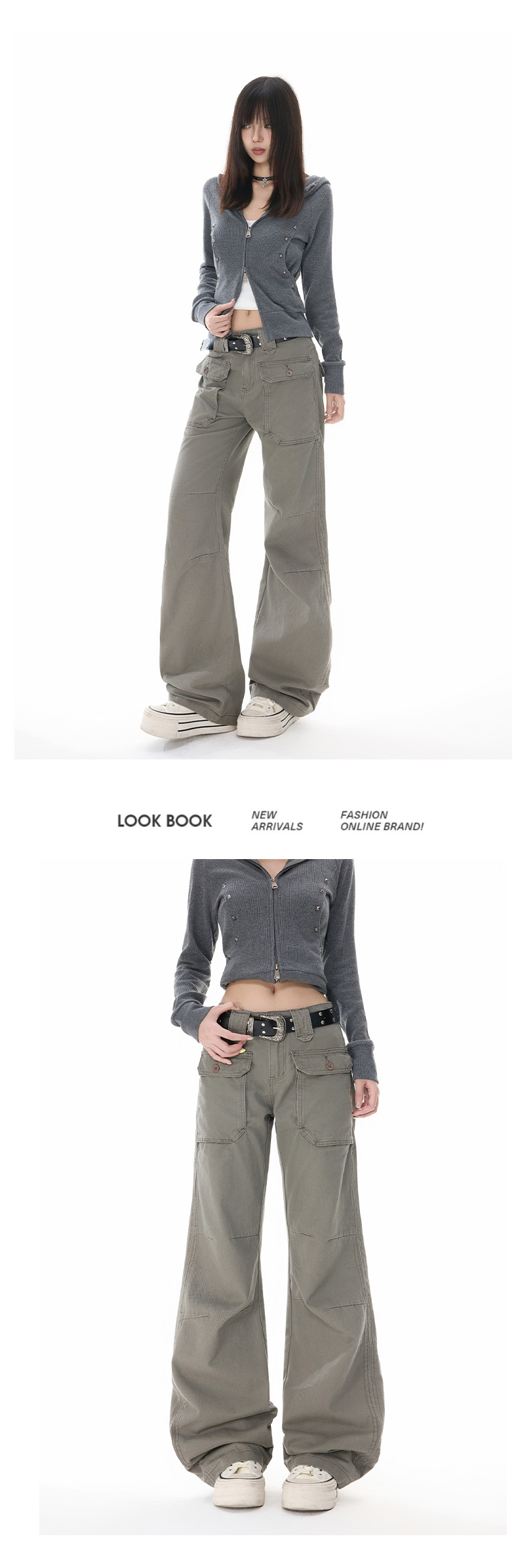 Women’s Multi-Pocket Flared Work Jeans with Pleated Design and Low Waist Bootcut Style
