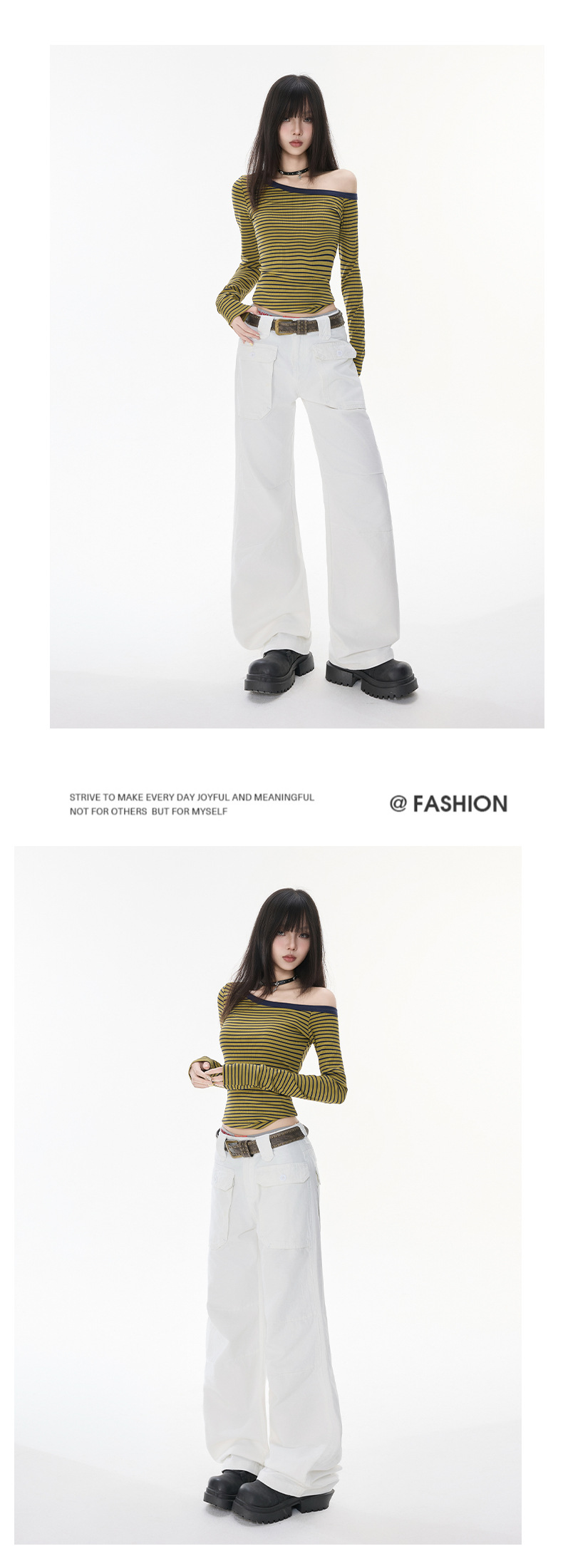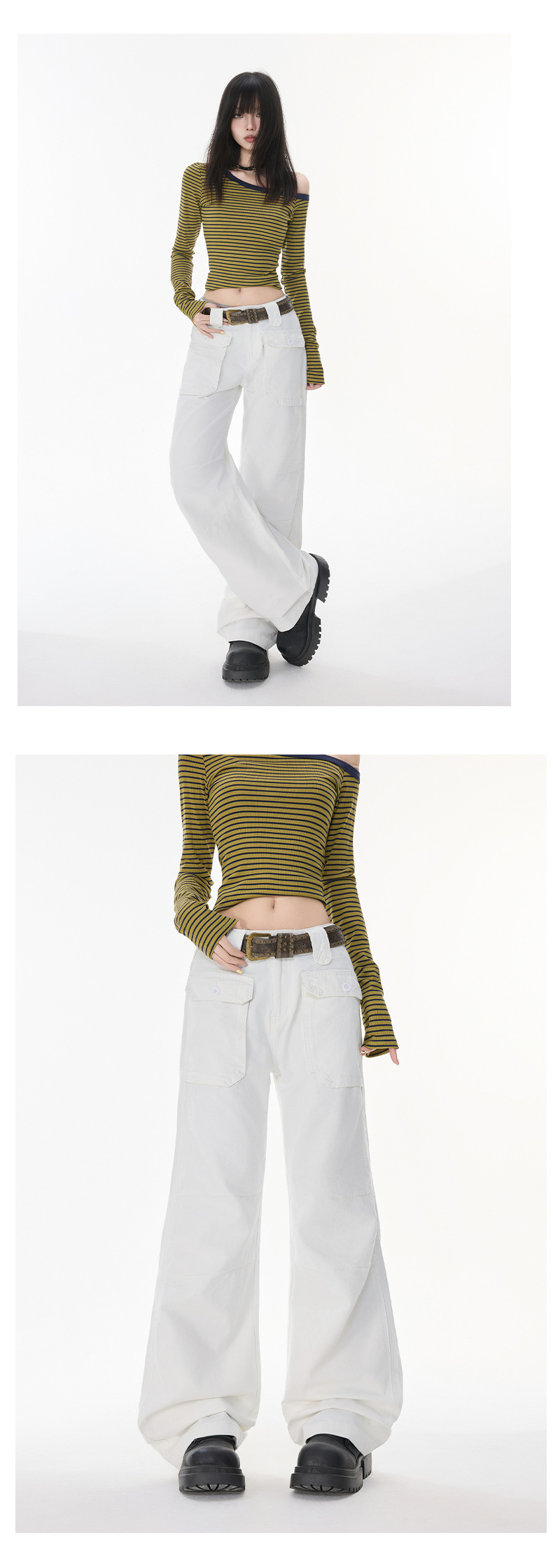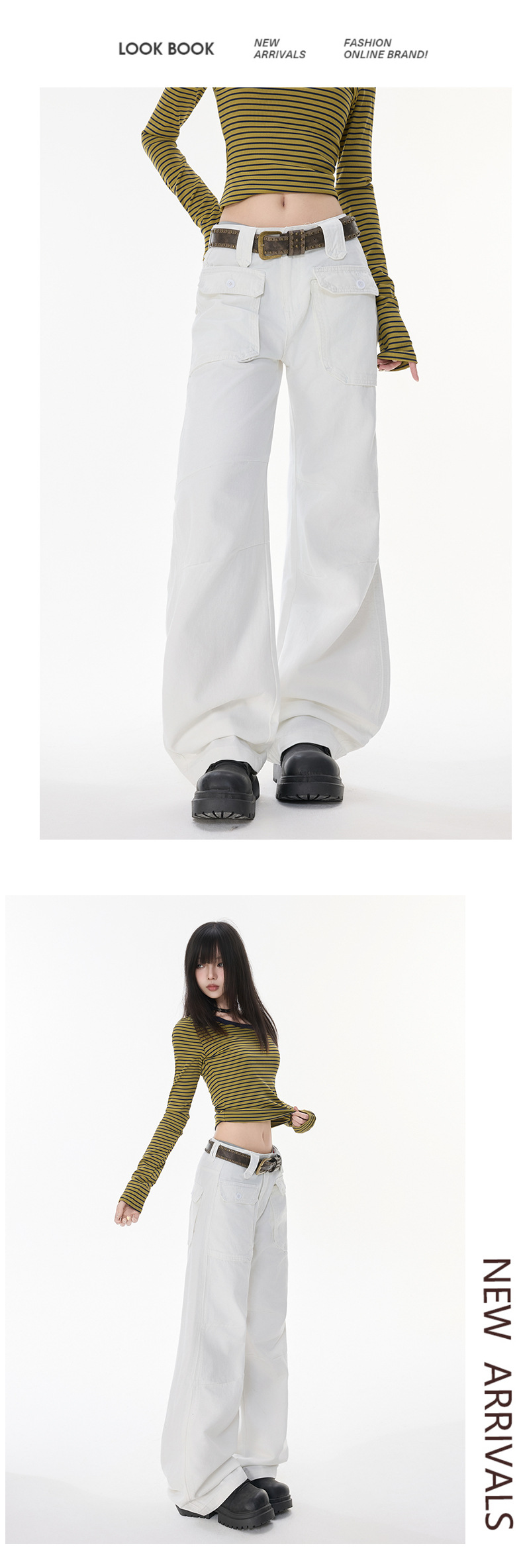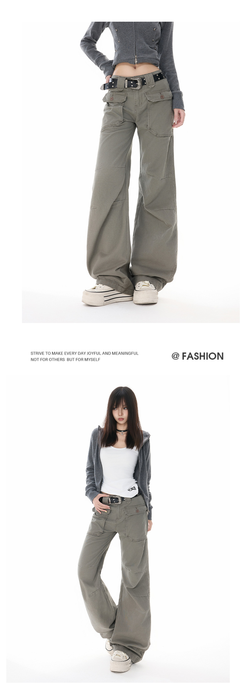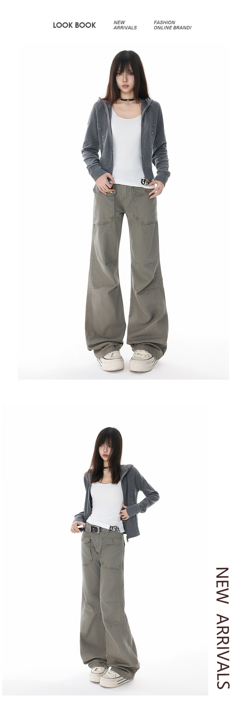 Women’s Multi-Pocket Flared Work Jeans with Pleated Design and Low Waist Bootcut Style