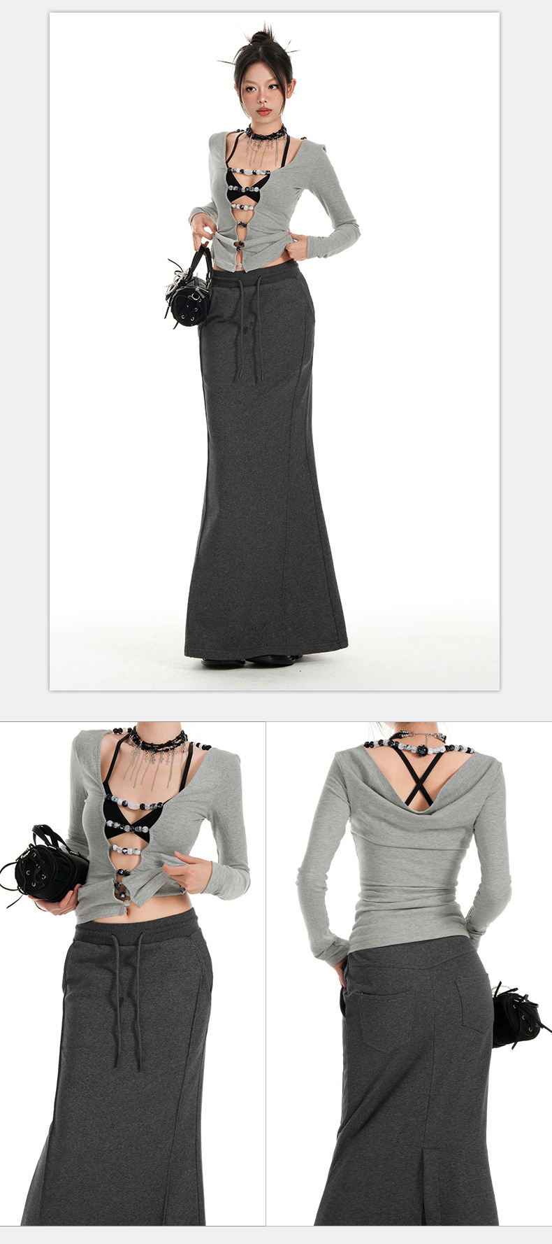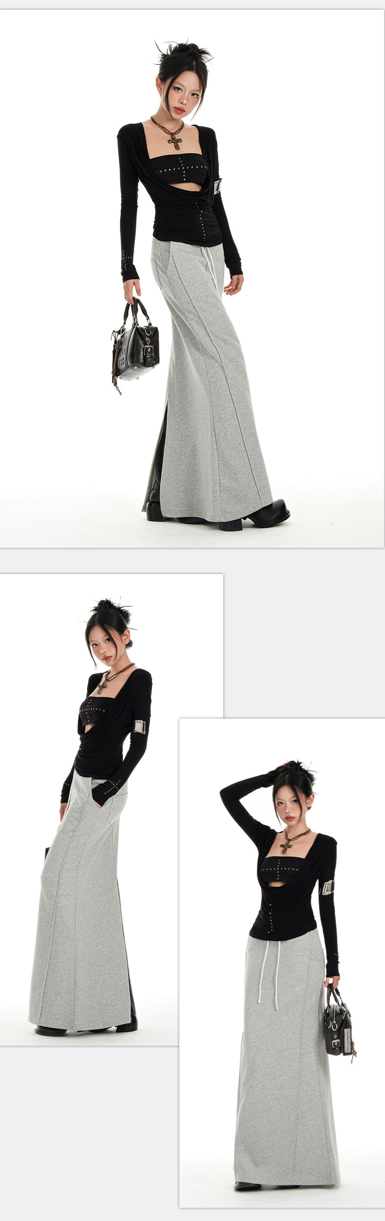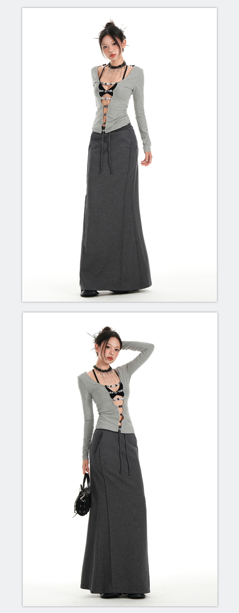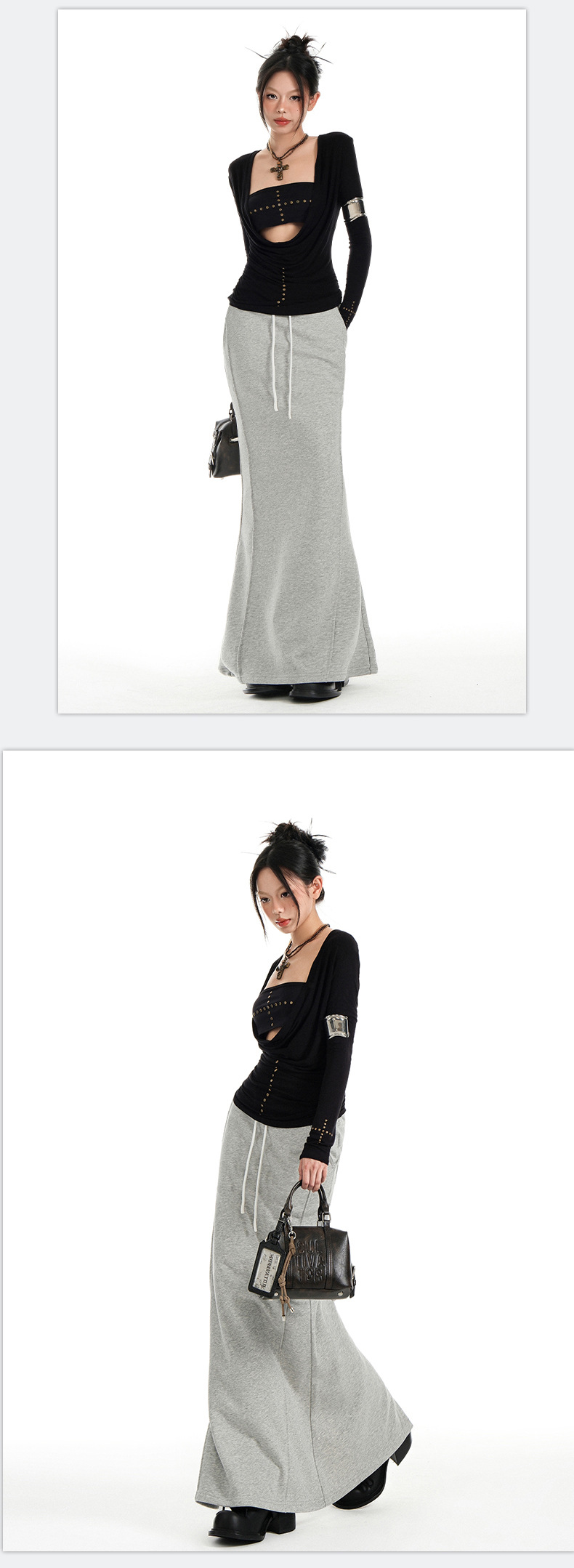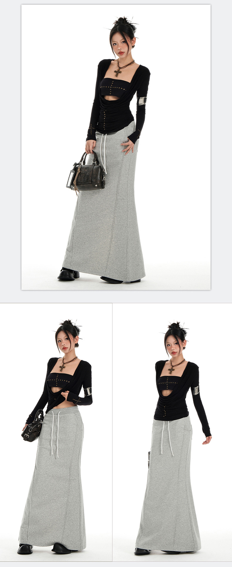 Color: Light Gray Long Skirt, Dark Gray Long Skirt